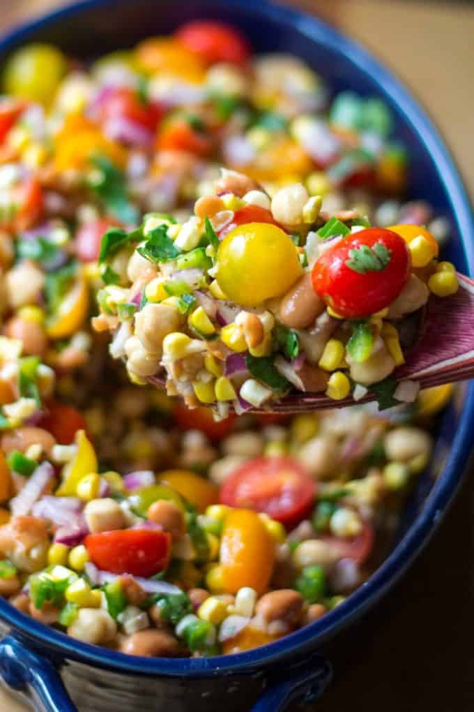 Fresh corn is so amazing in this Mixed Bean Salad and it’s so easy to do.