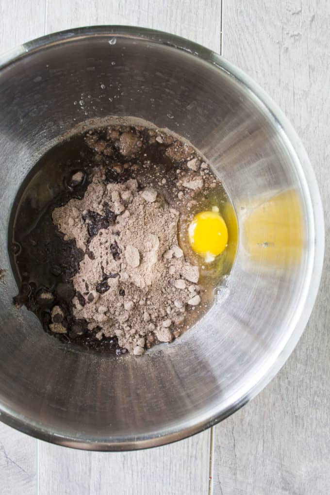 - In a large bowl, make you brownie batter using the 'Fudgy' instructions on the back of the box.