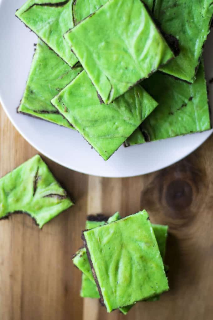 These Green Cheesecake Brownie Bars will not disappoint you. These are the perfect soft and fudgy cheesecake brownie bars and the green color for St. Patrick’s Day, Easter or even Christmas will make them even better! The chocolate brownie bars are rich and decadent and the cheesecake is soft and creamy. These Green Cheesecake Brownie Bars are the ultimate sweet treat to serve up to your holiday guests.