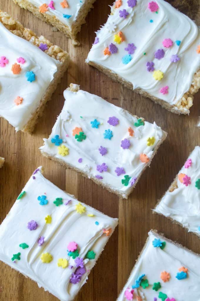 These are awesome!! Your buttercream frosting is amazing as well so I’ll definitely keep this as my go-to for cakes going forward! I actually grabbed the frosted Rice Krispie cereal (Not Rice Krispie Treat Cereal- bigger chunks and those must be broken up) and used those instead of the regular Rice Krispies! (That’s all they had in the store and with COVID-19, psh I’m not chancing it) Plus, I added extra marshmallow (Added about 1/2 cup – 1 cup as we were melting down) because my family loves them extra gooey! Delicious and if I might add, the sprinkles are a MUST! 🙂 Thanks for sharing this, love to know if you have more fabulous ideas! XoXo AMC
